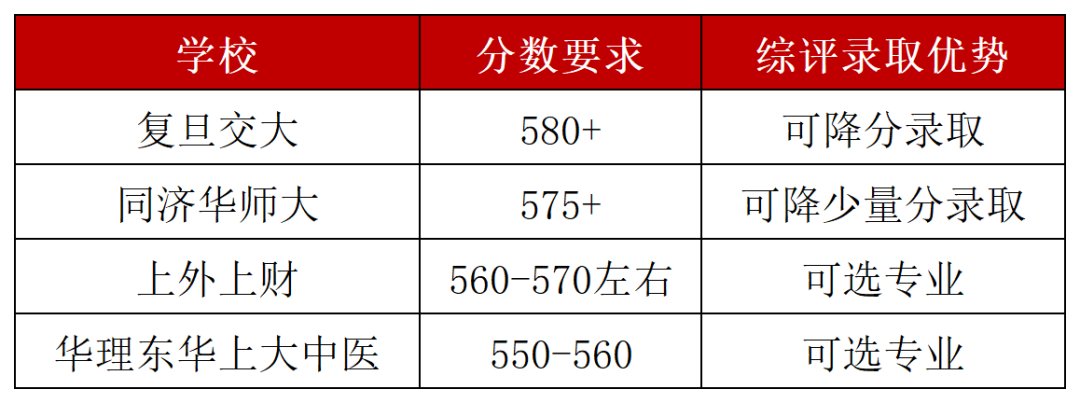 目前上海高考综评中,录取分数优惠最大的是复旦和交大两所学校。这两所学校把超过80%的招生计划都投放在综评里,综评里招生的好专业也更多,所以目标复交的同学,综评是必须要提前准备的。